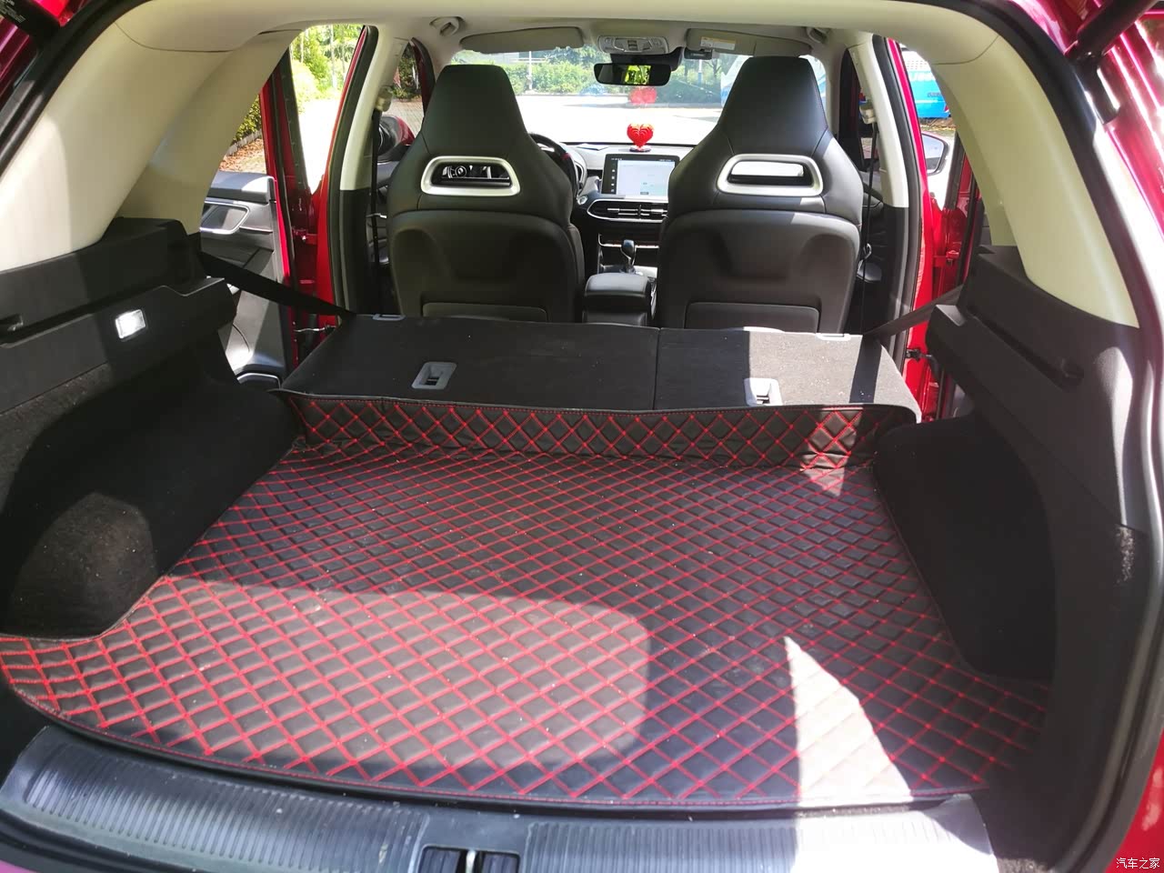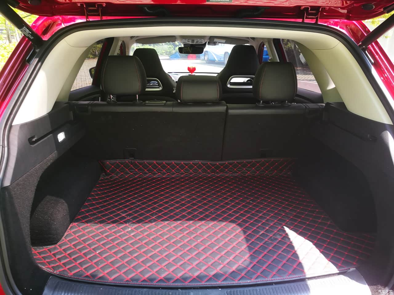后备箱的空间是可以扩大的,平时可以坐五个人。要是放倒了,以后有时候钓鱼可以在里面对付一晚,空间非常的平整,这个设计对我来说是很实用的。