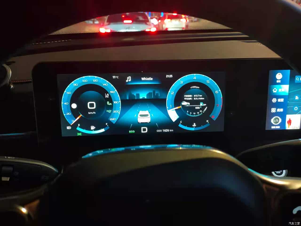 每个阶段的行驶里程和油耗。晚上行驶中亮度和清晰度很完美。