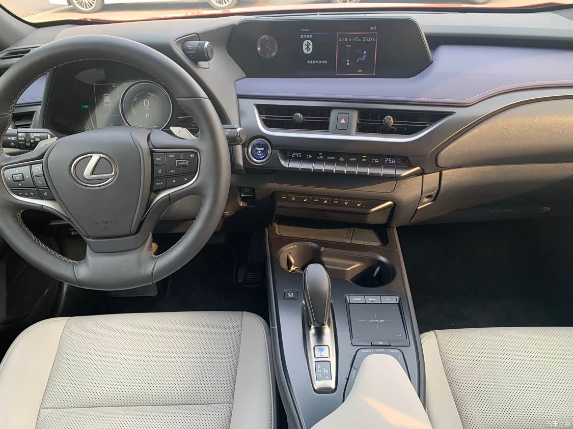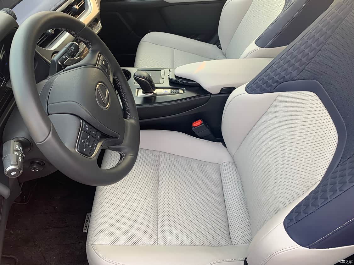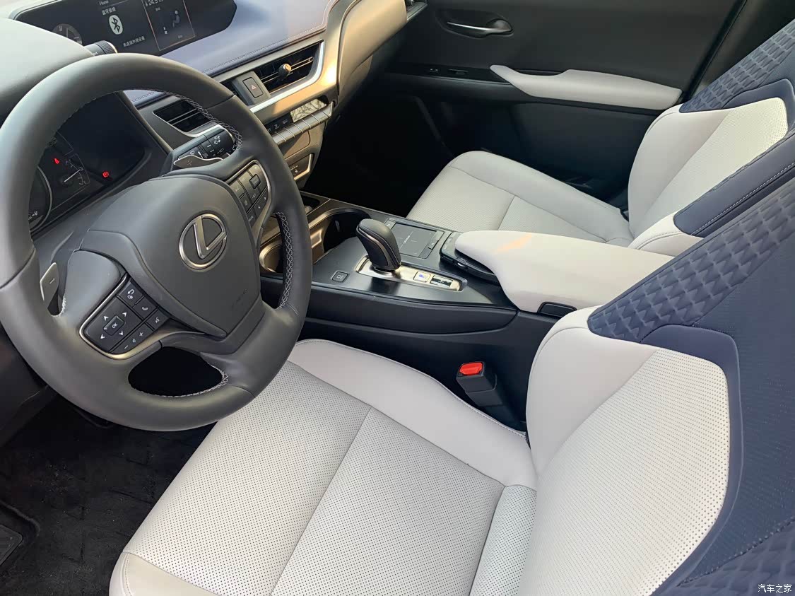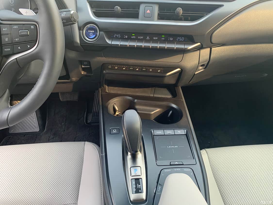 很多人吐槽的点是内饰太过简单,我是持比较中立的态度,豪华感肯定是没有的,但是也绝不是键盘侠口中的垃圾,质感是要比网上的好很多的。内饰布局也与UX混动版车型非常接近,7英寸液晶显示屏、悬浮式中控屏、最新样式的真皮多功能方向盘、Remote Touch触控板也都没有缺席,还搭配了全新设计的电子换挡机构,同时在中控台及后排座椅加入蓝色元素。