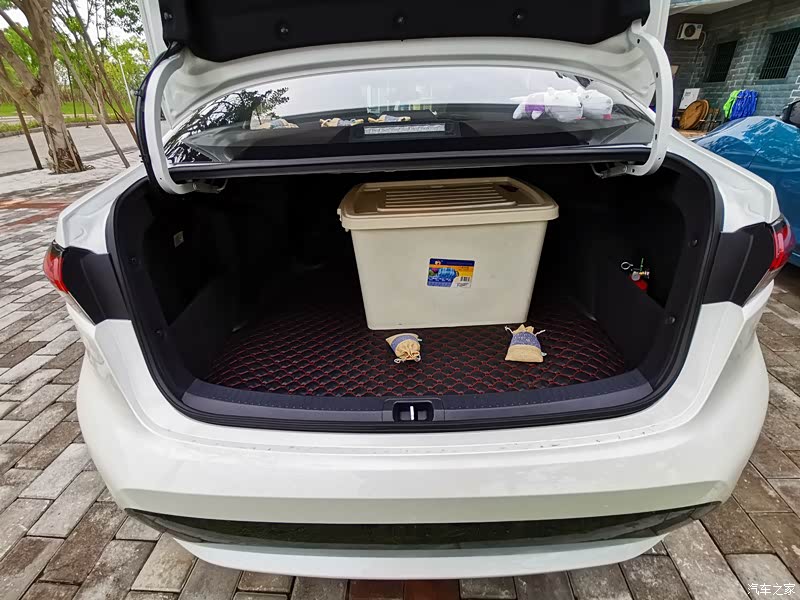 后备箱进深还行,宽度差点意思,那个储物箱高度的物品如果放置外面靠边上的话会卡住后备箱支撑杆,关不了。