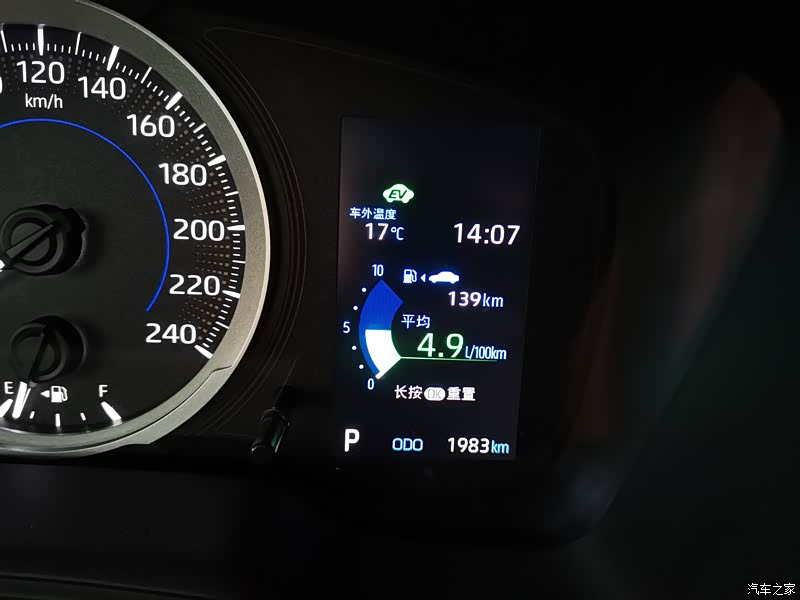 最满意是油耗,油耗最低开过4.9,目前表显5.0。我主要用于上下班通勤,小县城上下班一个来回就十几公里,单次行车里程太少,这样的油耗已经很满意了。(PS:我一朋友买的丐版雷凌双擎跑网约车,表显油耗3.9。)