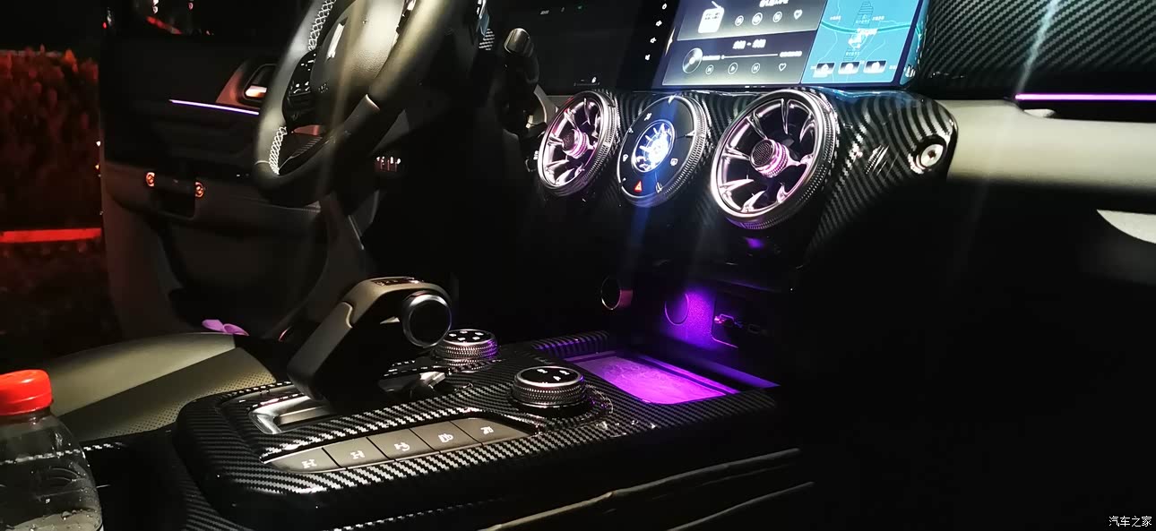 内饰漂亮,做工也很好,我特意换上了全碳纤维的,酷呆了,氛围灯也好看,就是没有无线充电,跟其他窗没有一键升降这两点有点不好!