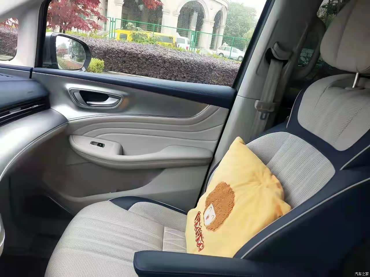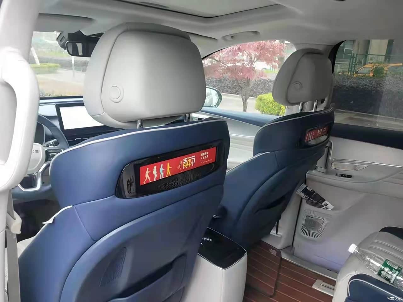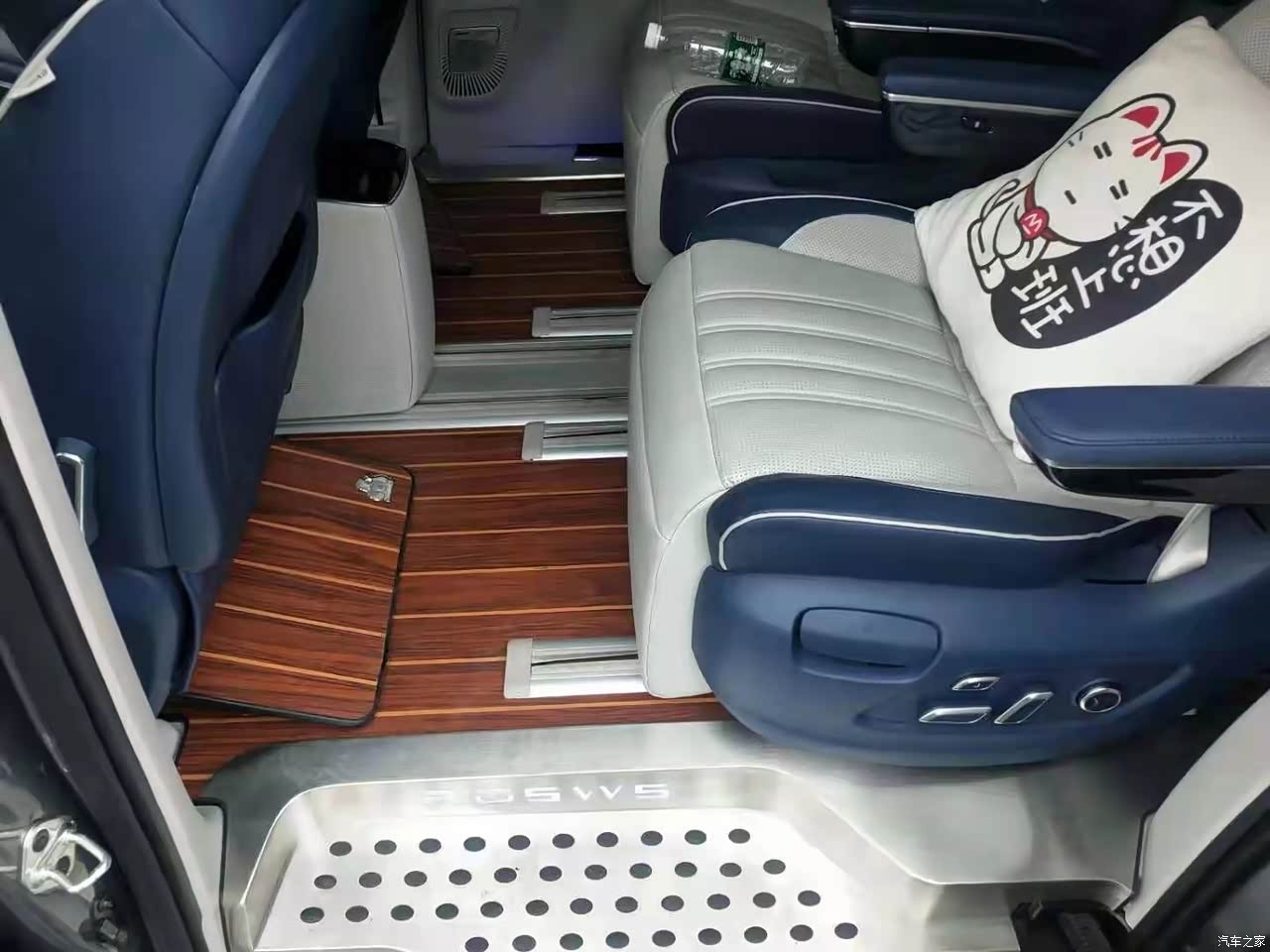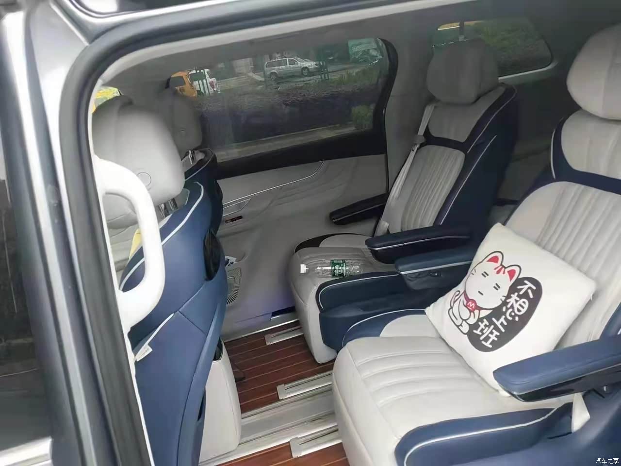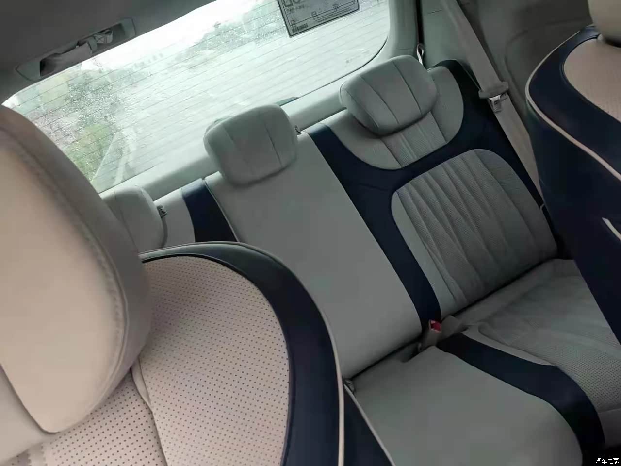 内饰怎么说呢,我喜欢简约,蓝白的搭配时尚而不张扬,前排的饰板也很低调,感觉内饰很适合家用,一目了然,清清爽爽,当初提车时有考虑过星空顶,但想到电路安全就放弃了,最后选择了铺地板,为的是好打理,绒布的地板和脚垫都容易脏。