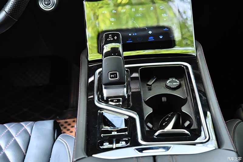 内饰方面,两个超大屏幕很有科技感,档把设计独具特色,后排中间还有扶手杯架,很人性化。