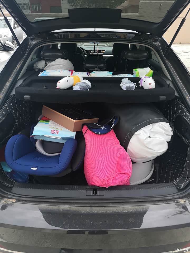 你看看这后备箱,能装不少东西,有了孩子出门带的东西太多了,幸亏这个大。