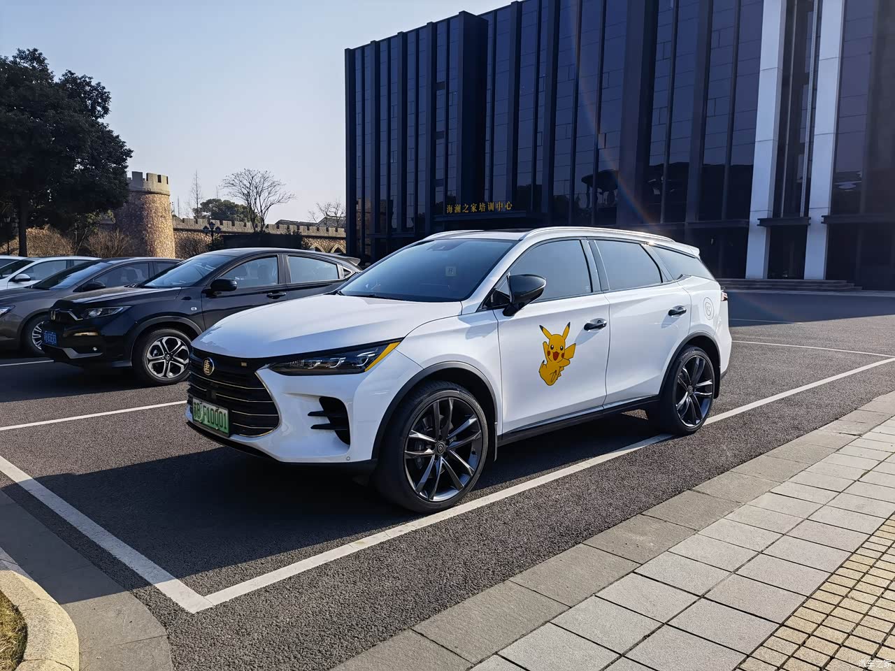 18款唐dm的外观-龙颜设计,真的是改天换地,15款真的丑爆了,21款相较于18款也只是微调。我在原来的基础上做了一点小小的改装,车窗镀铬条的贴黑,前脸的贴黑(还未贴)前铲的碳纤维件等等。