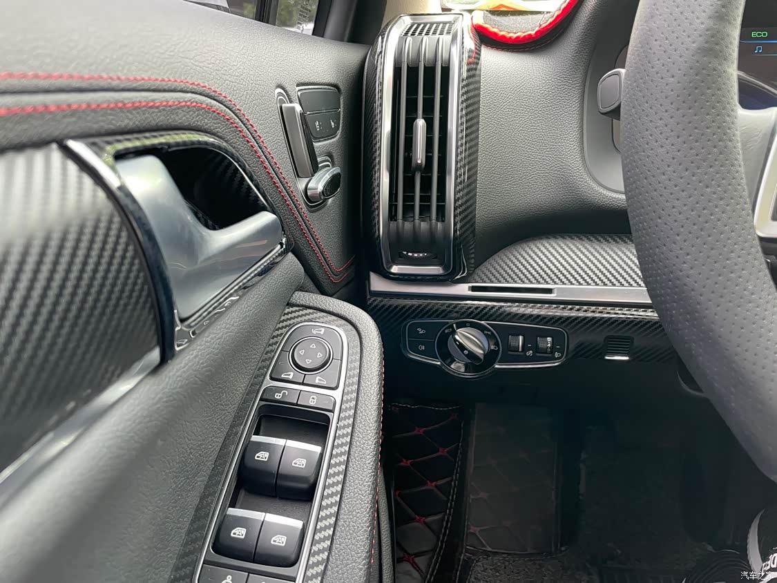 这一代的内饰,受到了特斯拉极简风格的不良影响,不够豪华细腻,不过在我的耐心改装下,能贴碳纤维的覆盖件我基本都贴上了,个人觉得还是可以的,看起来比较fashion
