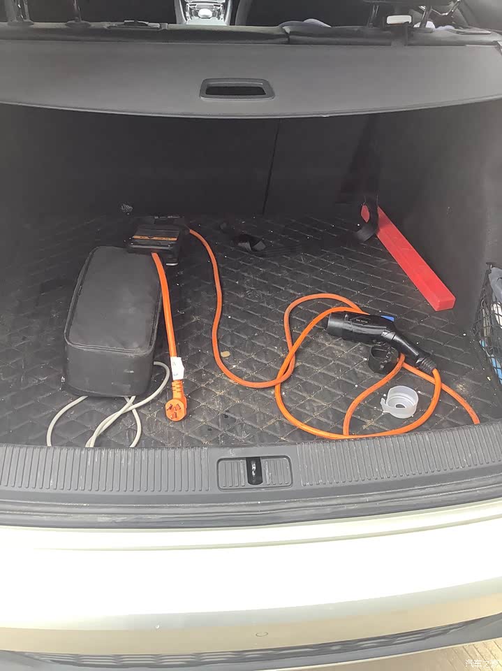 整个车做起来还是很舒服的座椅的话都是真皮的。而且车的空间也是很大,后座的话,两腿分开都没有太大问题。现在加了宝宝椅之后,也没有说感觉特别的挤。而且我觉得电车的减震比汽车的好一些呢,而且后备箱能装的东西很多,我是光放充电器了。