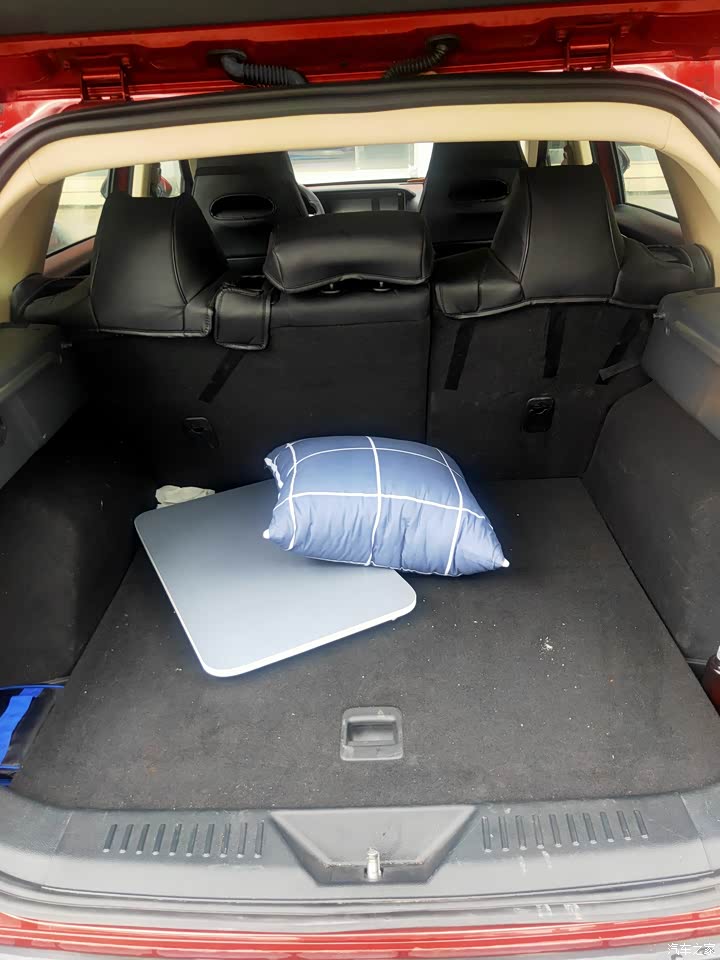 这个后备箱的容量的话也是比我以前那个雪铁龙要大 ,搬家也可以拉很多东西,然后就是座椅放倒的话他那个平整度也是非常不错的,自己开高速累了后排座椅放下来躺着休息休息也非常不错的。