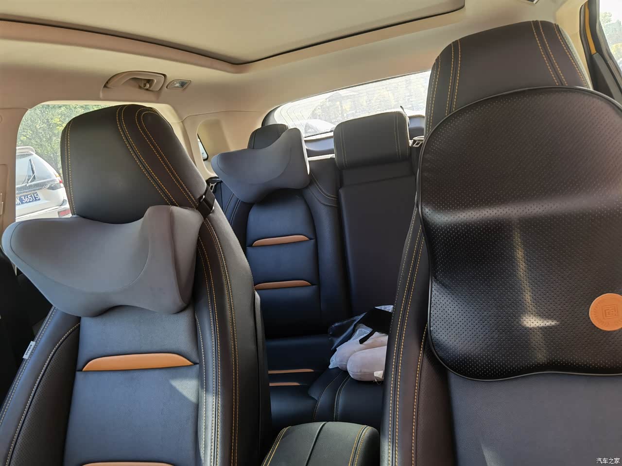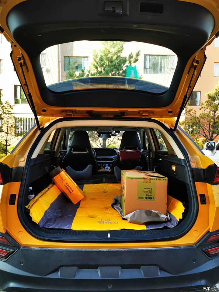 把后排座椅靠背放倒,直接整合成一张床,还是双人床,真的不错。