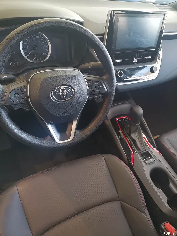 内饰方面的话比较简洁一点,配置也很全面,还有专门设计有放水杯的地方,喝奶茶也不用担心会洒,材料做工也很符合这个价位,家庭用车嘛,对于内饰也没有什么特别的要求,实用就行,但是雷凌的整体内饰设计还算是比较简单大气的,在这个价位来说算是蛮不错的了。