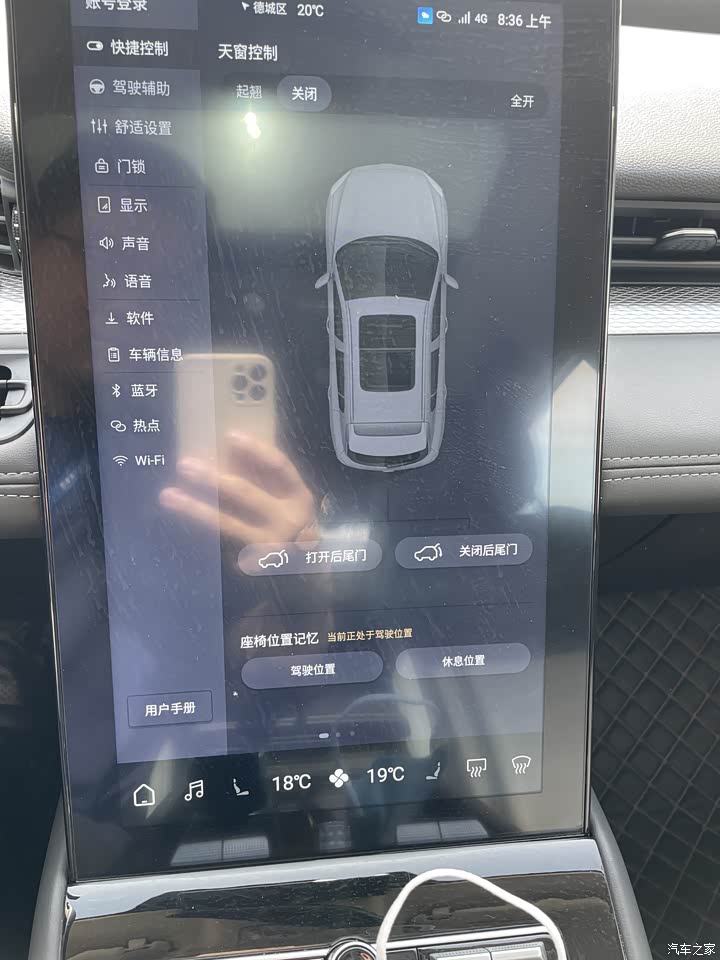 中控是一块大屏幕,左右的功能全在大屏上显示,还可以语音控制,很方便,很科技。