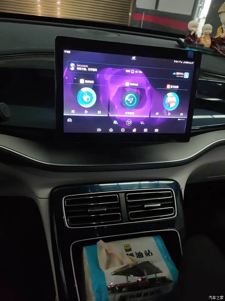 中控台这边我很喜欢设计的挺好的,而且大屏清晰度很高,有时候带孩子出去,孩子在车上容易哭闹。可以在上边,让他们看动画片,听音乐挺方便的,而且大屏还会来回旋转,可以根据自己的喜好转换成横行或者竖行。