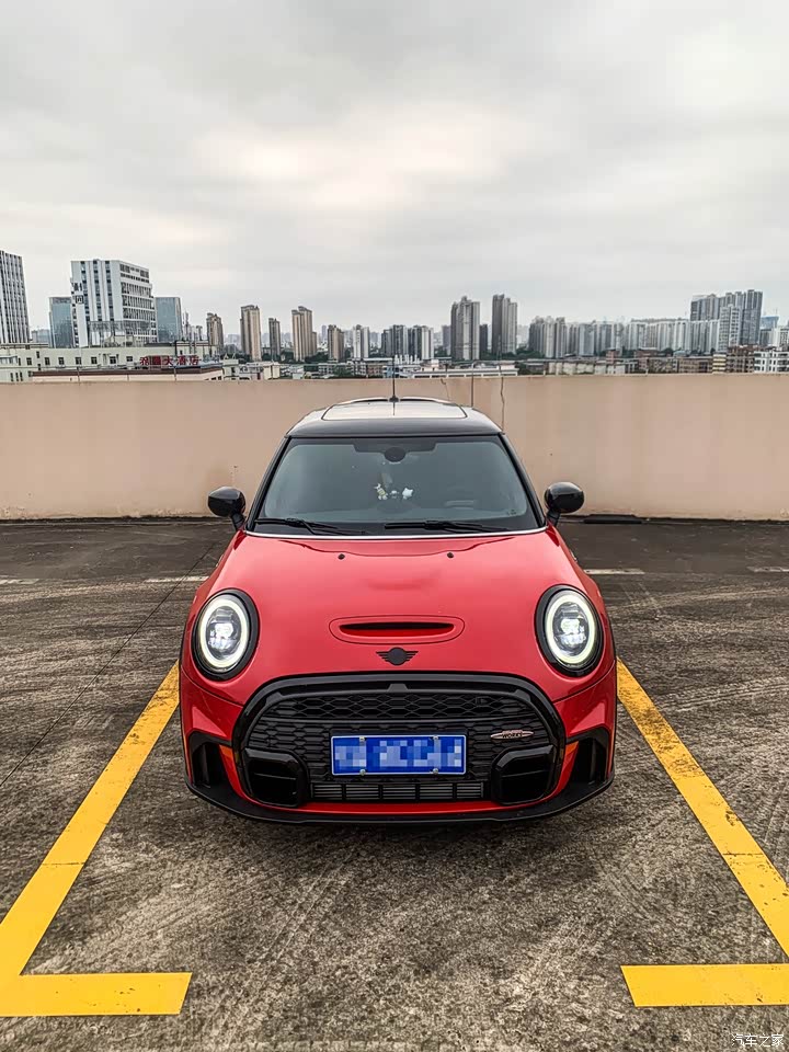 传承JCW的外观套件,酷酷的全黑中网,辣辣的红色,路上经常望见俊男美女回头看的眼神。