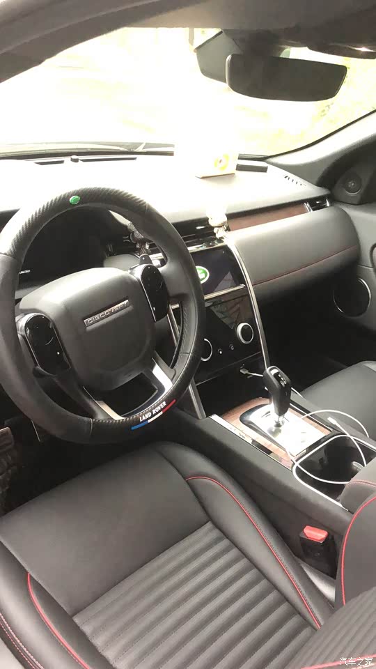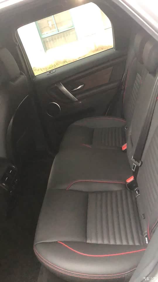 内饰的话还是路虎的简洁风 没有惊艳 但还是蛮耐看的 两块大屏幕的分辨率还是蛮高的 看起来还是蛮舒服的 还有最重要的一点 倒车影像还是蛮清楚的 这点值得点赞 内饰的黑色皮座椅配合着红色缝线真的还不错 还有一些镀铬装饰条和木纹 还是有点豪车的感觉的 注意只是感觉而已哈哈