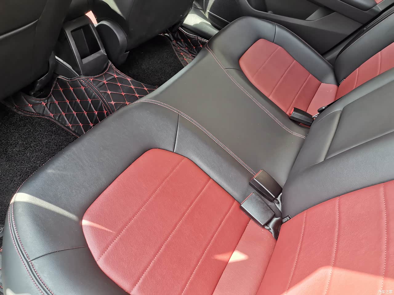 内饰做工也很不错,座椅是全皮质包裹的,黑红双拼,很有运动风。中控台的样式简单大气,不繁琐,透露着浓浓的大众风格,就是塑料感稍微有点强,如果想要改装的话自己加个软包也不错。
