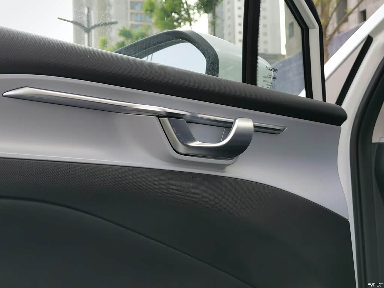 封闭式的中网最能够体现出几何C新能源身份了,不过我还是觉得侧面是整车最有灵魂的地方,动感的双腰线设计,隐藏式的门把手,悬浮式的车灯都让几何C变得更加好看。