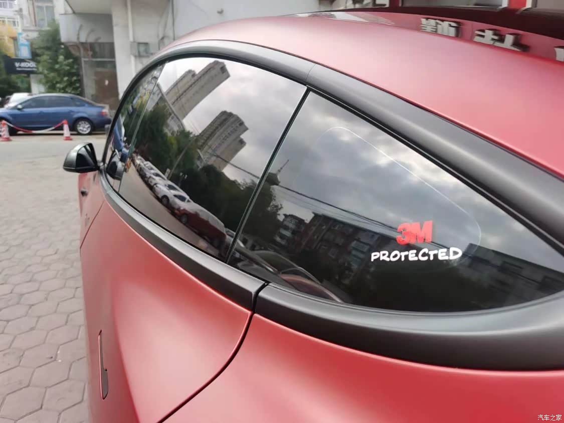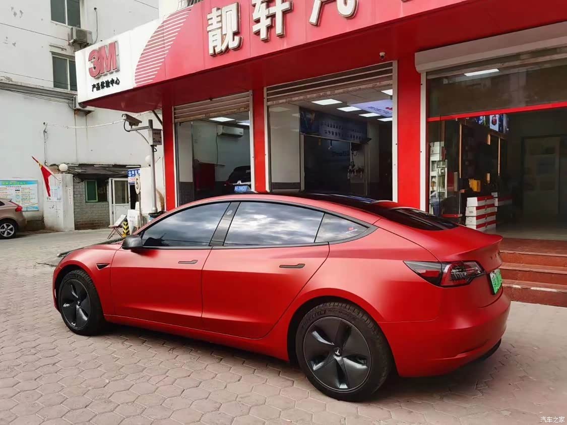 整车贴的进口3M改色膜,颜色为暗红色哑光效果改色膜,效果出众,质保7-8年,不伤车漆,让爱车焕然一新,