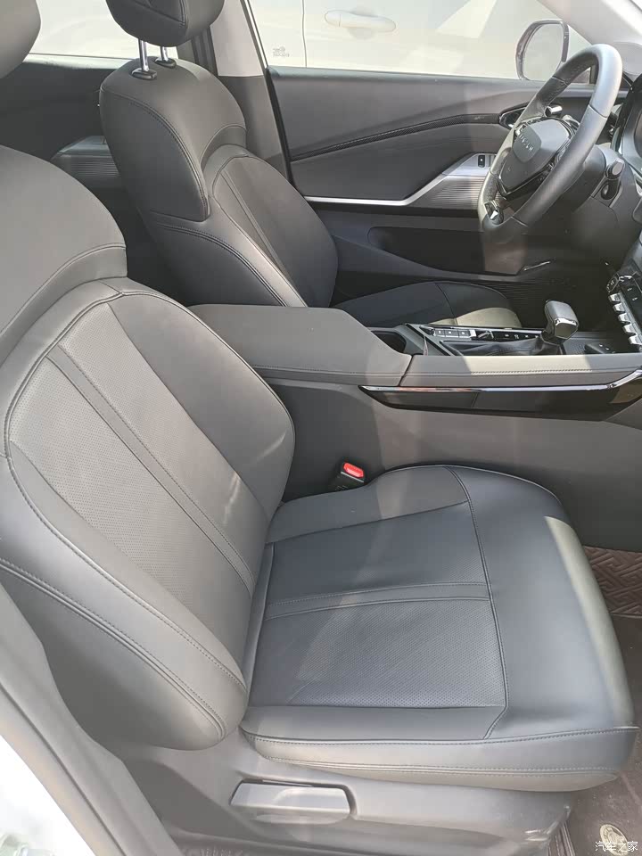 座位都是柔软材质,坐起来很舒服,车门上塑料比较多,但是也没有很明显的廉价感。