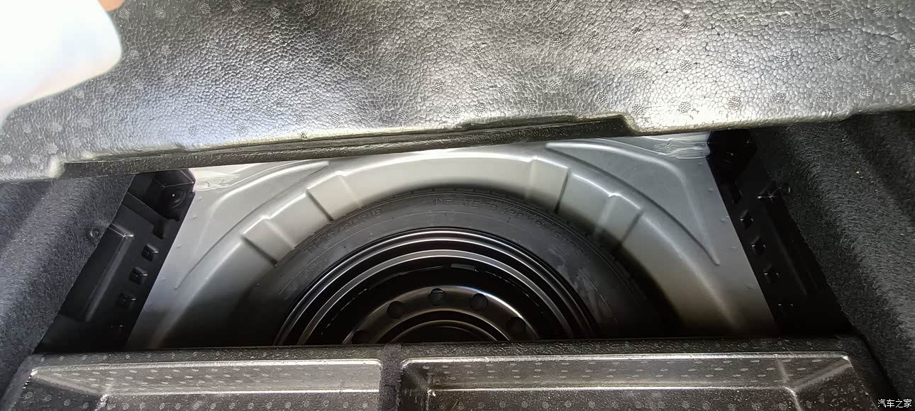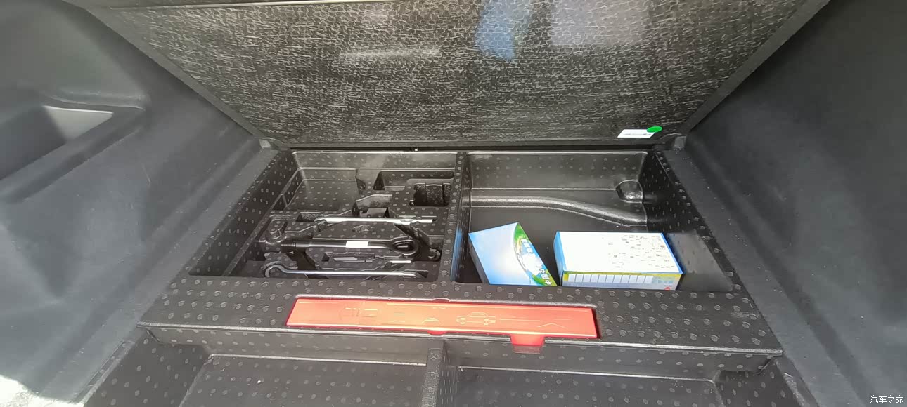 备胎在这个储物盒的最底下,设计很用心。后备箱两侧都有照明和小挂钩,旁边带掏空的储物格,这些小细节都是加分项。