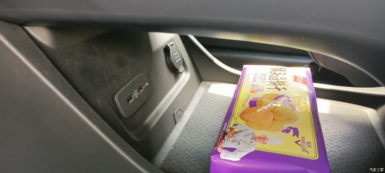 中控台底下掏空了,可以放杂物;有电源接口和充电接口,放手机在那充电也行。