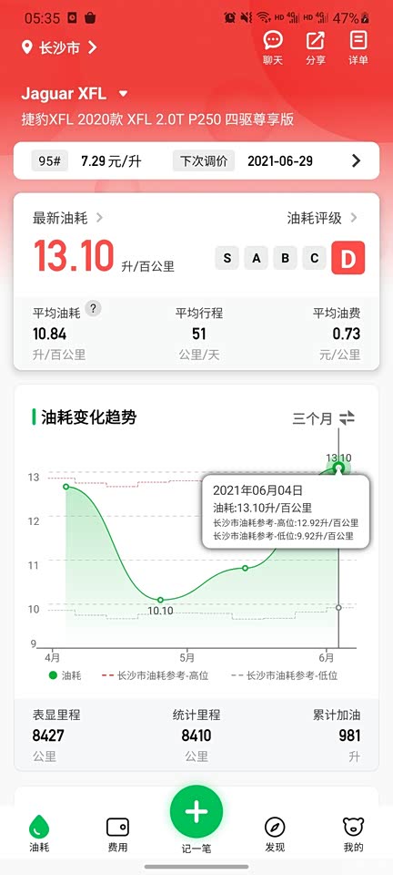 本人开车比较随性,所以在油耗方面一直都不是很理想。城市用车油耗普遍在10-14L之间,高速用车比较喜欢使用定速巡航功能,油耗可以来到7-8L,有一次从湖南去四川,一箱油跑了870公里,综合油耗能够接受。