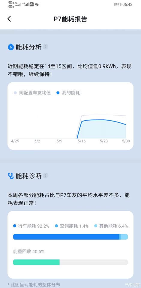 提车半个月了,收到过一次能耗报告,14.2度电/百公里,还是相当不错的!至于冬天的电耗,目前还未可知。但是据“鹏友”反馈,应该要在WLTP原则下打5折。
