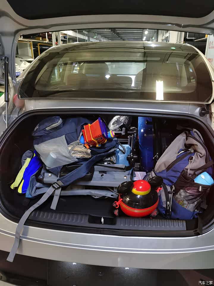 后备箱放了一个18寸箱子 大型手推车 2个双肩包,绝对没问题。