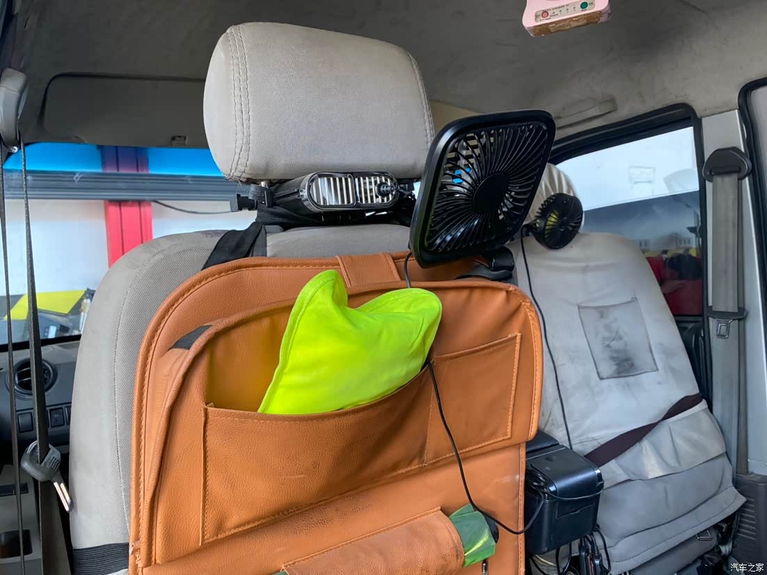 东风小康C32作为一台货卡座椅包裹性设计得不错重点是腰部以及臀部完全能够支撑起来,自带织物座椅气垫比较薄,但我长期进入田地泥地里面开车,路面不是平整的较多石头农作物在地上,如果夏季没有开空调以及随着长时间路面的颠簸会让人受不了,所以在驾驶位上加装一套稍微舒服点的坐垫跟靠背气垫,做好防护工作,要不然一天下来身体吃不消特别劳累。二排配备两个小风扇,也是夏天必备的好物之一!