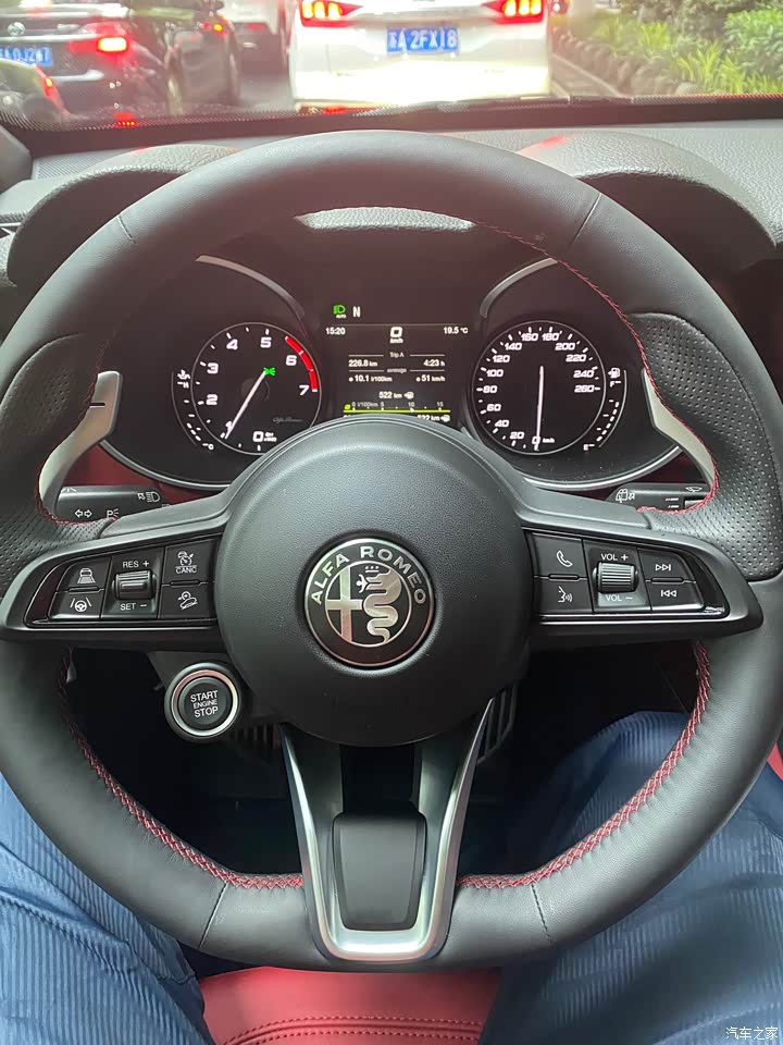 你需要一点点学习这辆车的脾气,同时在拥堵的路段中,你需要多一点点耐心,因为没有自动驻车的它可能会让你的右脚时刻处在活动的状态中。低速状态时它会有点点窜的感觉,仿佛在对你说:加速加速!我愿称其为神经质的刹车也会让你有一点点奇怪,轻刹有时候会显得略重,但是只要你重踩,刹车反应还是非常灵敏的,与其说是刹车脚感不好,不如说调教的便赛道。国六装了颗粒捕集器,虽然日常并没有很大感觉,但也算一个不如意的地方吧。意大利人做车机的水平明显要比中国人和德国人要差一点,不过至少够用,就不要求太多了。