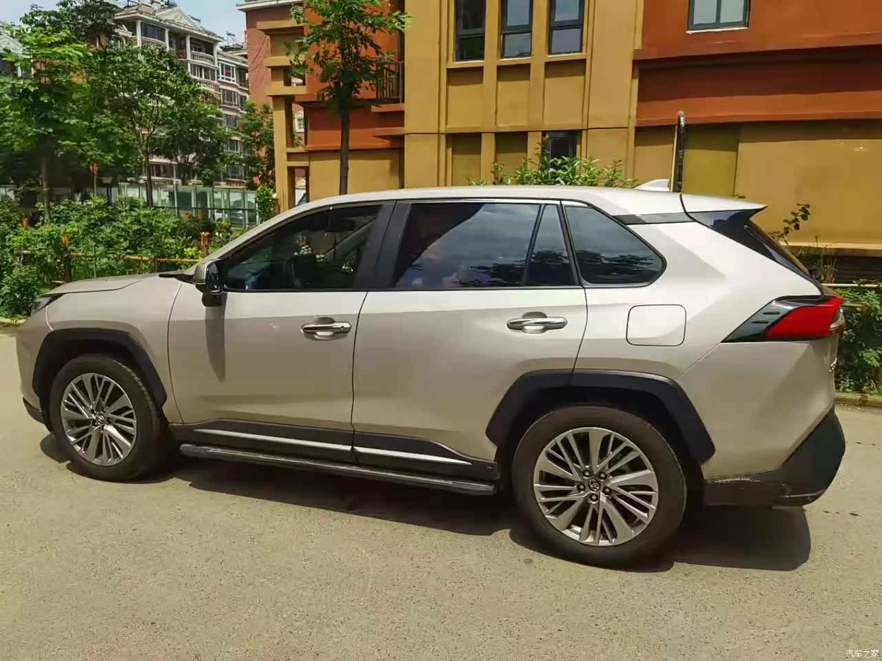 我买的是琥珀金色,在阳光下闪闪发光,毕竟看够了市面上的黑车与白车,买个亮色感觉都高端了很多了。配上威兰达独特的轮毂,非常的霸气,从侧面看,就像小号的汉兰达。