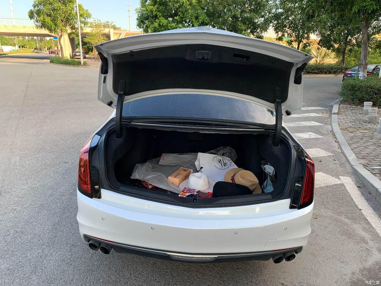 后备箱容积非常大,开口很大,纵向也很深,大件小件的东西随意放都可以,我有两个儿子,经常要带他们外出旅游,一到外出的时候就各种大包小包,放在房间的时候感觉像一座小山丘,但是放到CT6后备箱的时候感觉很容易就放进去了。