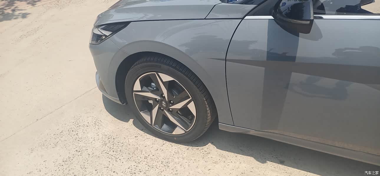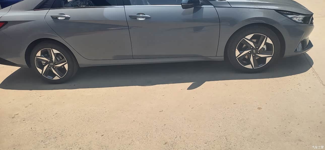伊兰特的外观是比较有棱角的,远看两门的话会看到一个Z字形的设计,视觉上很有冲击力的。线条感很有亮点的。特别的大气,行驶在路面上,尾部的回形设计,让爱车的高级感升级了一个调调哦。买车后这段时间跟闺蜜们聚会的时候市场会有人问起这个车。轮毂的尺寸好像是17寸的,行驶的时候轮毂的花形漂亮。