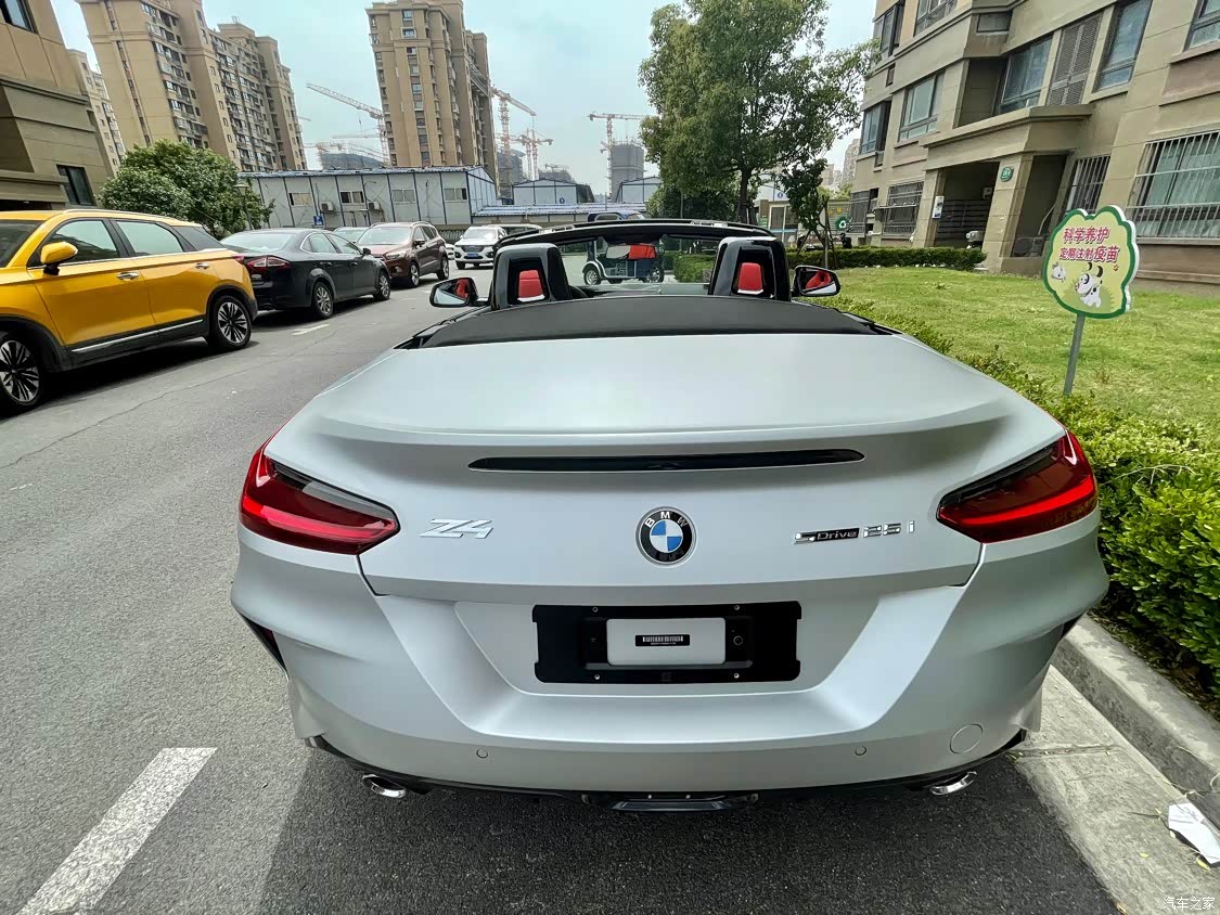 1 颜色,这个冰河银的颜色我是非常喜欢的,因为只有进口车且小部分车型才有这个颜色,非常稀少。贴了哑光车衣以后,效果更棒了 2油耗满意,我刷了隐藏以后长期舒适+开,偶尔S+,表显油耗8.2L,比我之前的奔驰C油耗低多了 3动力操控满分,市区开192P+ZF8对于这么小的车来说,简直完美,起步永远第一位,操控如丝般润滑,以前觉得4系操控好,买了Z4以后4系我基本就不开了…… 4外观颜值,总有一堆键盘说什么Z4新款太丑了,不是硬顶的敞篷,软顶不安全什么的。但我的买它的观点很直接,就是因为它是软顶,真正的豪华跑车保时捷 宾利 劳斯 马丁,为啥都是软顶的,如果硬顶好为什么现在新款都采用软顶设计呢?打开敞篷或者不打开,开在路上回头率就是高。线条切割,肌肉感很强。总之外观我是非常满意。 5空间,虽然是双座,但座两个人的空间非常好,无论是横向或者纵向的空间都完美,我180无压力。都不用调到最后。 6关于选配 舒适套装我选了,这个我觉得非常值,非常便利,上下车直接走就行,感应开关门,且选了舒适套装以后可以钥匙开关顶棚。哈曼我也选了,但效果不如预期的好。无线充电不要选,充电慢,而且发烫厉害。