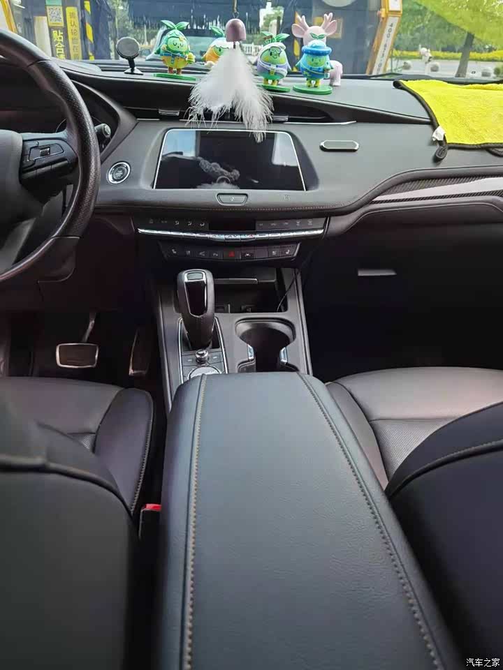 内饰其实看着不是特别豪华吧,都是黑色的内饰,不过有一点好处就是耐脏,所以你看我车里加入了一些小娃娃,看着就好看了许多,还有就是这个车里面摸起来也挺舒服,台面上都是软的,这个我还是非常满意的,像其它的如果屏幕能再大一点就好了,因为我有时候会依赖导航,我是希望屏幕更大一些,我看着也方便一点。