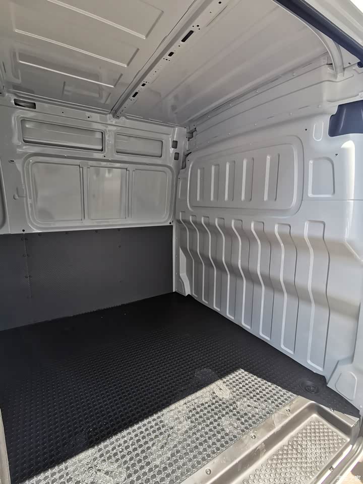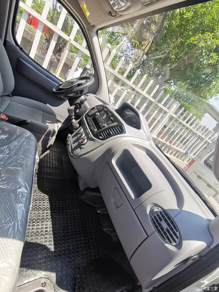 整个空间也非常规整,车厢四周都铁,空间还是比较大的,可以多装点货。驾驶室的乘坐感也非常舒适。