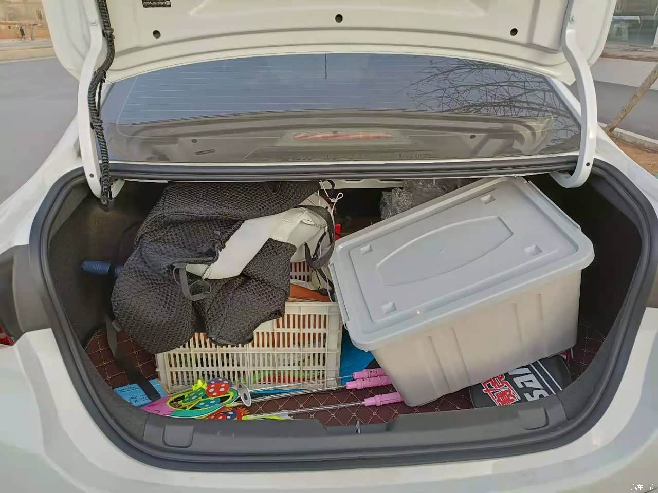 后备箱的空间也够大,孩子的玩具,工具什么乱七八糟的东西都可以放,这两天老婆没有收拾车,后备箱乱的很!