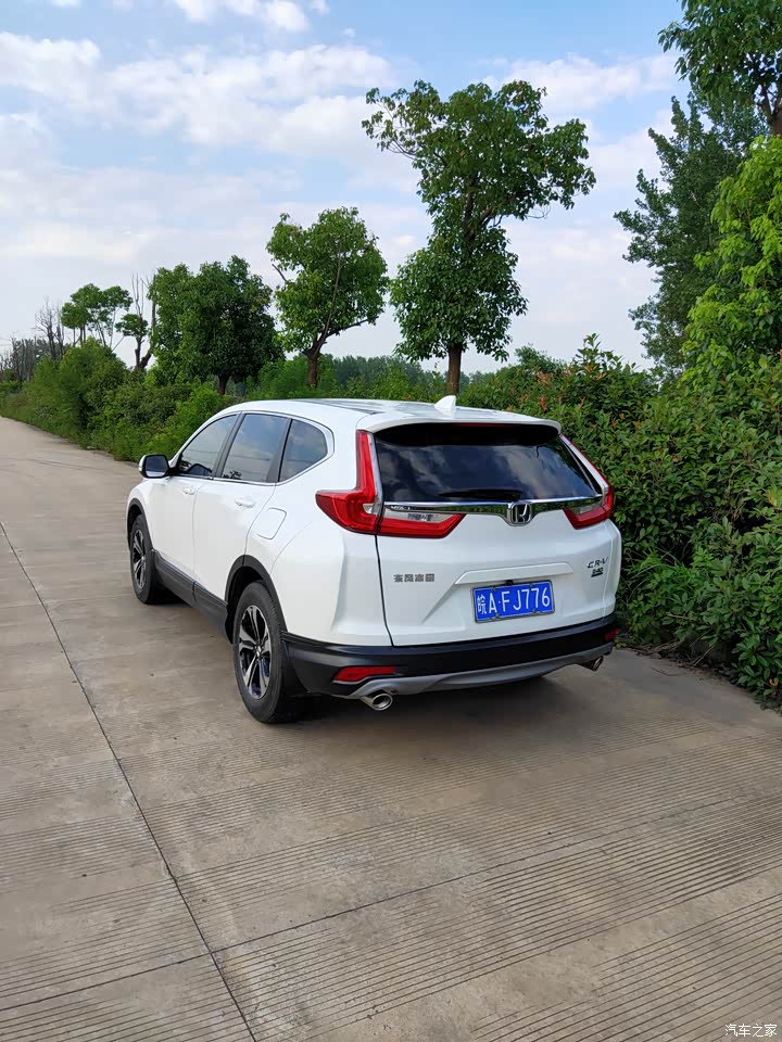 crv的外观符合我的审美,非常喜欢,我买的每一辆车都是因为喜欢。上白下黑的熊猫配色,珍珠白在阳光下也闪闪发亮。 还有就是动力,crv加速是那种不知不觉的快,过红绿灯其他车逐渐被拉远,其实油门还没怎么踩,上高速跑提速也相当给力,cvt能将发动机控制在最大扭矩转速持续的发力。100以后后劲也想当足,到140都感觉不到,拿d挡来说吧,120深踩一脚油门,一下转速由2100上来到2500,3000涡轮介入更多了,动力就会源源不断,动力可以不用但是不能没有,该快的时候能快起来不拖泥带水,干净利落,给人足够的信心。 接着就说油耗,说油耗就要涉及路况,城市合肥,大多数都是老家县城到城区来回跑国道省道县道,坐过满满一车人油耗也依然省油,别再说日系车省油是皮薄了,还是看技术和调教的。 刹车也很好,这个比动力更重要。速度起来关键时候还能收放自如才行,初段就比较灵敏。 空间很大,家里两个娃经常在上面玩,一家四口完全够用,后排座椅放倒后,后备箱盖板掀起来一格就是全平了,还能拉东西比如洗衣机什么的。 底盘也比较高,农村也经常跑无压力。前麦弗逊,后多连杆的独立悬架也为车提供了足够的支撑与滤震,我很满意。调教软硬适中,过起伏路也感觉不到什么多余的弹跳。