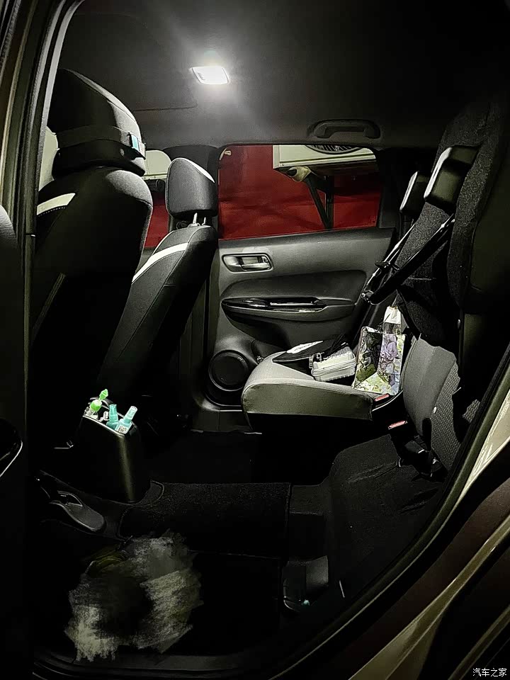 织物座椅虽然不耐脏,但相比皮质我是满意的。整体简洁一体式的设计,会让人觉得空间更大。乐趣版是没有扶手箱的,但我也没打算配,开放式的储物通过自己的功能划分,好用只有自己知道!(说句题外话,有次朋友坐我车才发现,原来驾驶座椅背后是没有储物袋的,副驾驶座椅背后是有的。为了整体性价而减配,可以理解,毕竟用处也不大哈哈哈