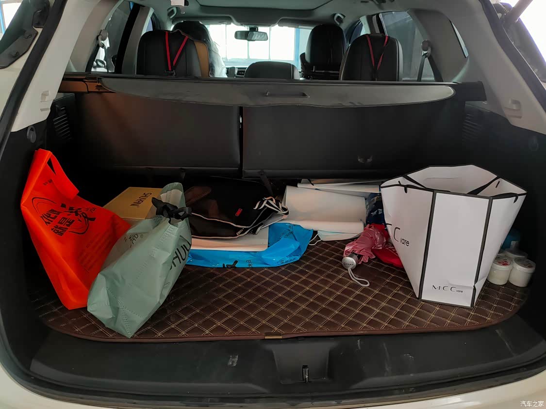 后备箱开口比较大。里面放的东西也特别多,空间比较大。