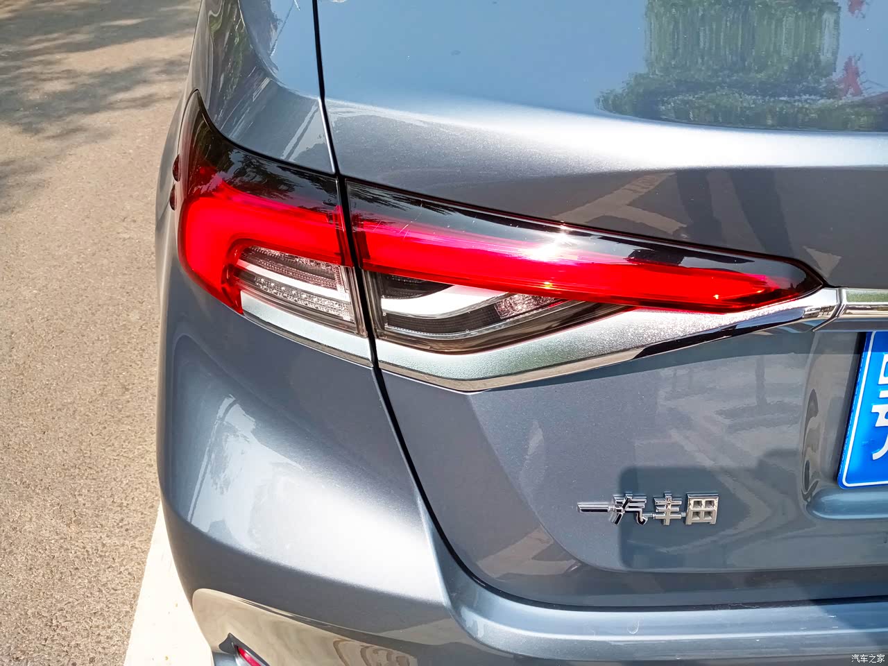 LOGO标跟卡罗拉汽油版不一样,多了一圈蓝色的纹路影子,向发光字一样。大灯跟尾灯都是属于冷峻型,很有气质,前脸贯穿式纹路连让几个灯连成一体,像一个人撇着眼睛,很有煞气。