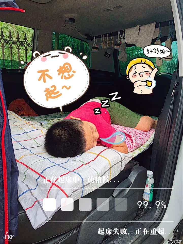 秒变大床,不想起,后排座椅可以完全放平,非常平,但是有接缝,垫上个自充气的垫子还是很方便的。