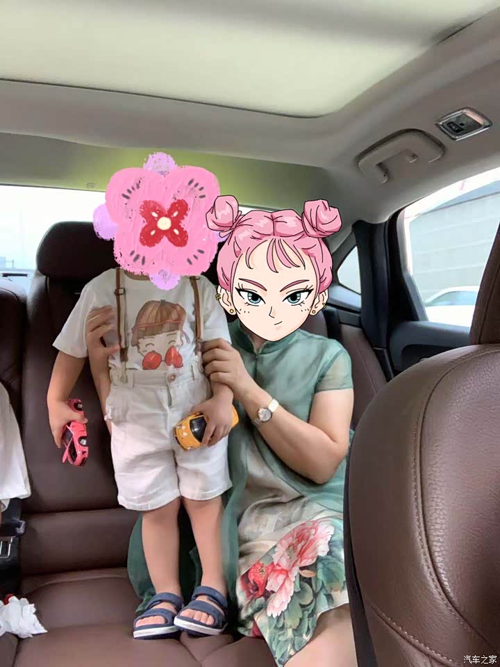 家人坐在后排,空间完全够用,舒适。儿子在后排长期各种姿势玩耍。