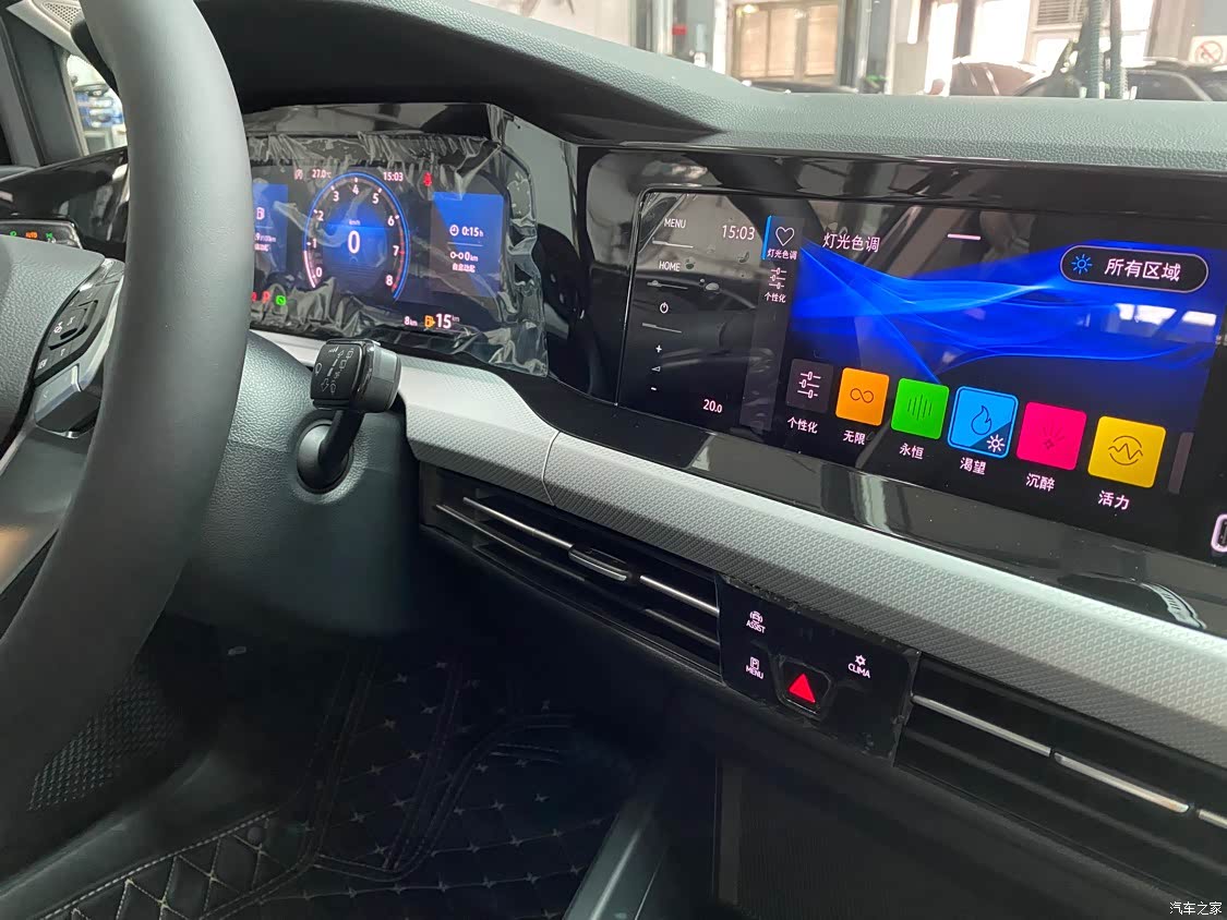 内饰是我最喜欢的,双屏幕、触摸屏,布局一点问题也没有,内置无线充电,我上车就一个iPhone放充电舱,一个接有线CarPlay,双充电。氛围灯,包皮门内饰。缺点是座椅,三文治布局,出汗容易渗进座椅产生异味。