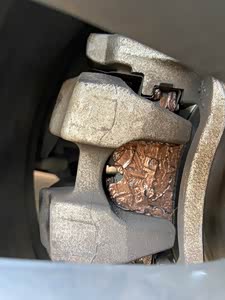 这车很特殊,后刹车片磨损极快,30000公里就快没了,周末抽空换了个刹车片。 片650,人工50,解码50(解码最坑,就拿个电脑按一下进去维修模式收50)。