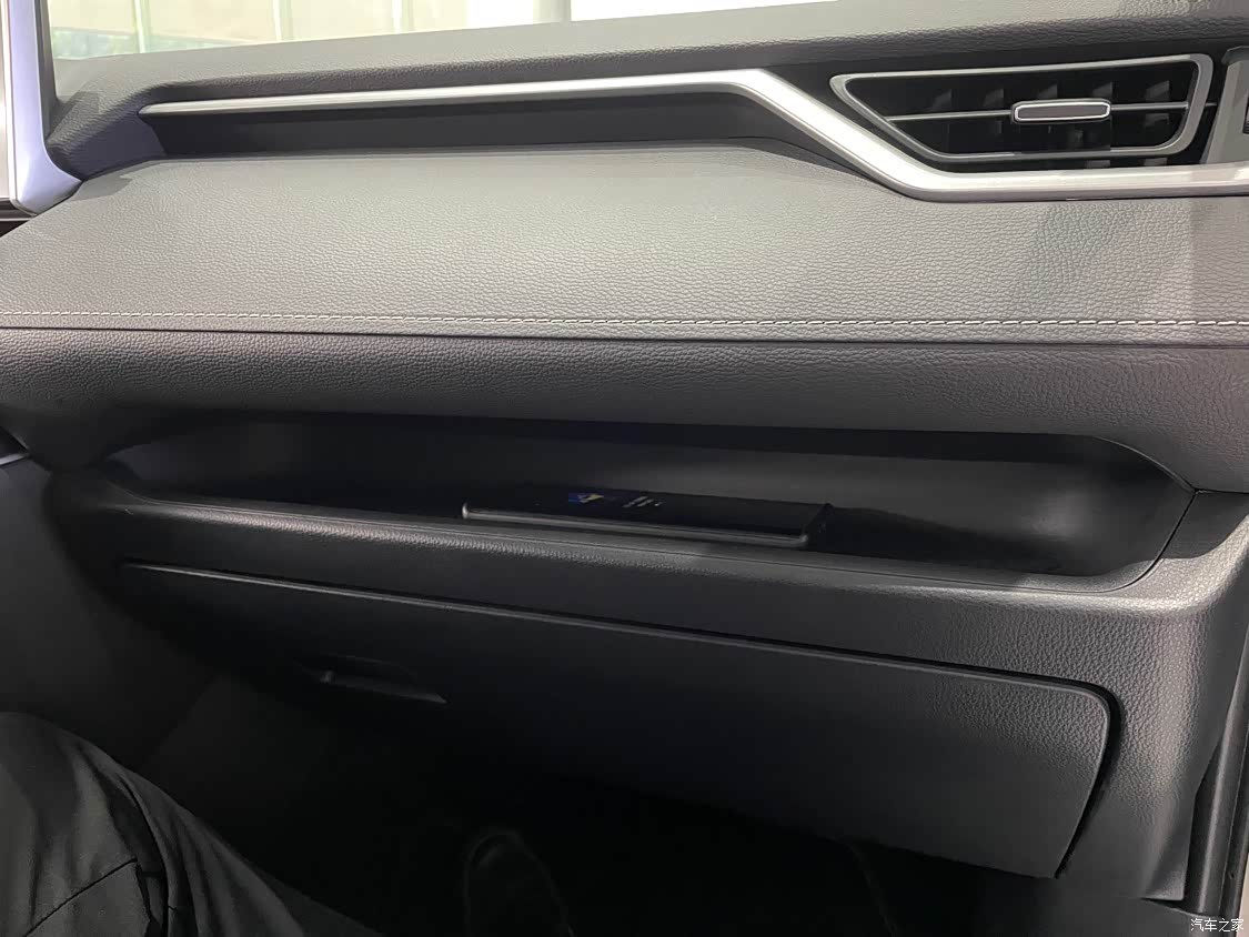 副驾驶座椅前方,手套箱上方有一个分层的设计,在副驾驶坐着的人可以把手机,香烟等随手物品放在里面,既安全又实用。