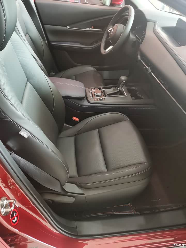 这款cx-30的内饰其实单挑其中一样并没有太特别的感觉,但是组合起来整体感觉又很有质感,旋钮虽然还是老式旋钮,但是手感很舒服,要说的话,我比较喜欢导航屏,没别的原因,单纯的因为它往主驾驶倾斜,我看导航更方便,更安全!
