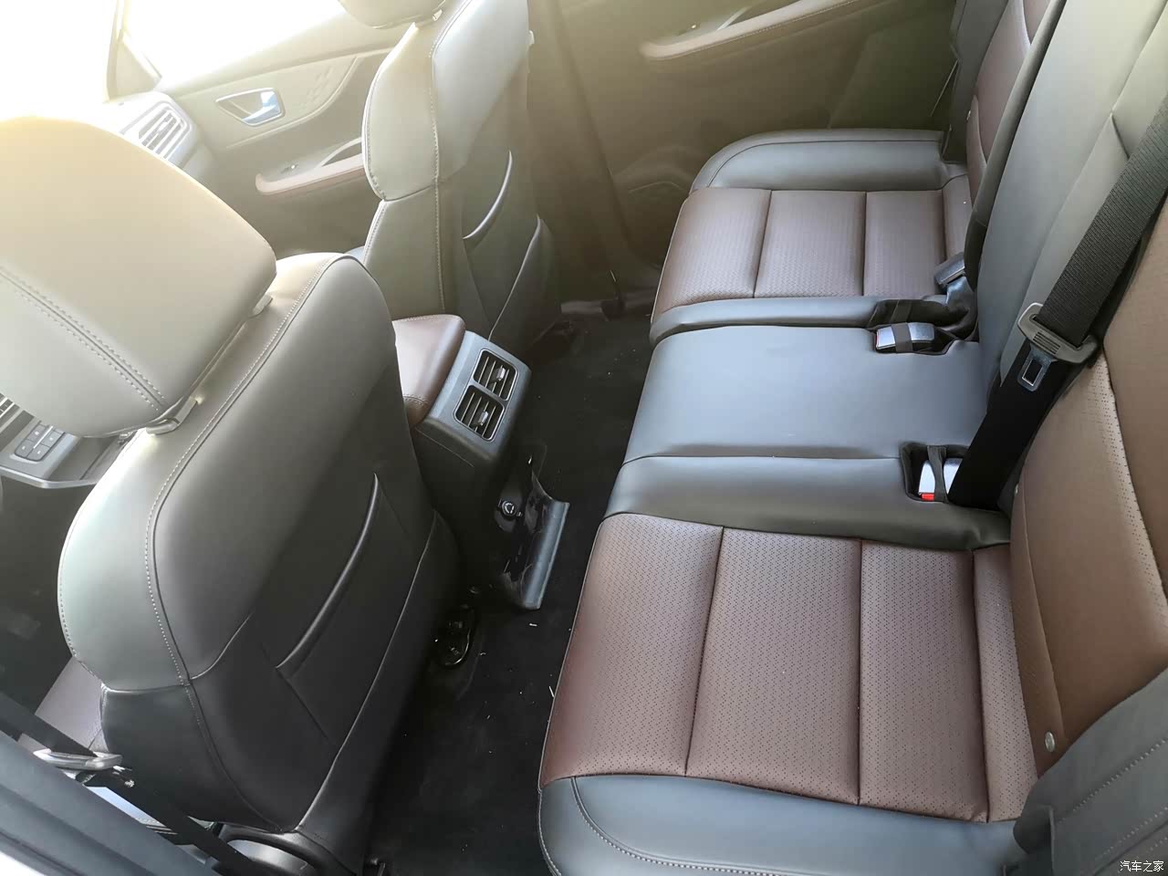 内饰相对简单些,基本的配置都有,还算可以。这个低配的是没有天窗的,整体材质还可以手感不错,座椅是皮质,双色拼接的。方向盘也包裹了一层皮,开起来转向手感也很好,中控台也做了双色的看起来更高级了。中控屏是悬浮式的,功能不多但是还挺好看的,也很好操作。座椅中间排是可以前后调节这个是我非常喜欢的,后排座椅也可以放倒,带中央扶手箱,下面带有一个大的隐藏式储物箱,储物收纳很方便。