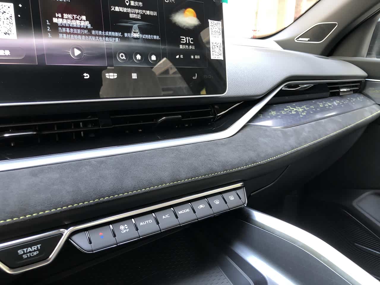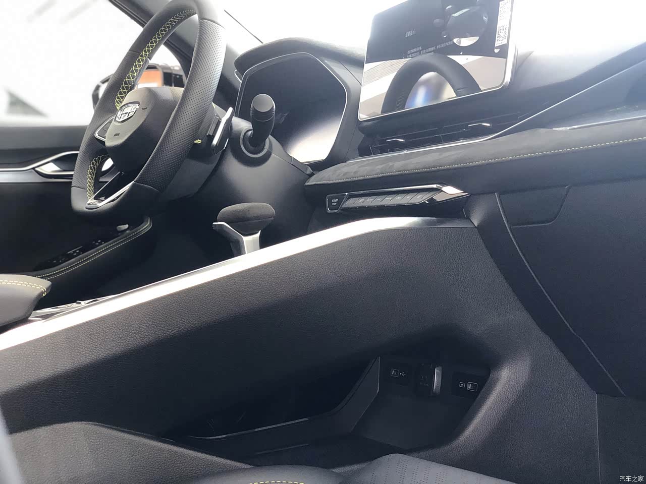 整体内饰的做工工艺,真的是做工非常的精细,让人感到惊艳,风险及布局中控台和门板上面全是搪塑软包材质,无异味,上车就让人感到自然座椅及门板上面几乎是翻毛皮,坐上去一看就知道材料不一般,属于运动风格,包括头枕上面的刺绣CMA平台中控翻毛皮,黑色物理钢琴按键,让整体质感就提升了一个档次不而且可以清晰的看到黄色缝线,做工是真的细腻