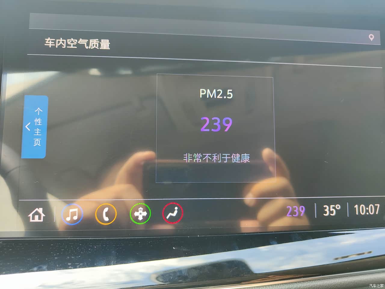 这个配置搭载了PM2.5过滤装置,然后过滤速度较快,平时我老公在车上抽烟的话,那个数字他就会飚得很高,很红,标的400多500多。但是一般两分钟左右它就会降到12时左右。我们家小孩子最讨厌他在车上抽烟了,这样的话,空气的确会好很多,车内有也没有什么烟味。